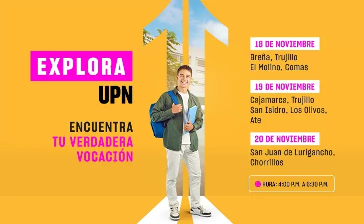 ​Descúbrelo en EXPLORA UPN este 18, 19 y 20 de noviembre a las 4:00 p. m. 🔥 Talleres, charlas y mucho más para encontrar tu carrera ideal. ​