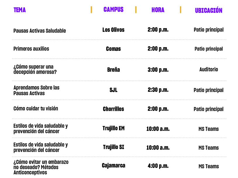 ¡Mejora tu estilo de vida con prácticas positivas! Este 22 de mayo en nuestra sección de #LunesSaludable, tenemos diversas actividades en cada campus.