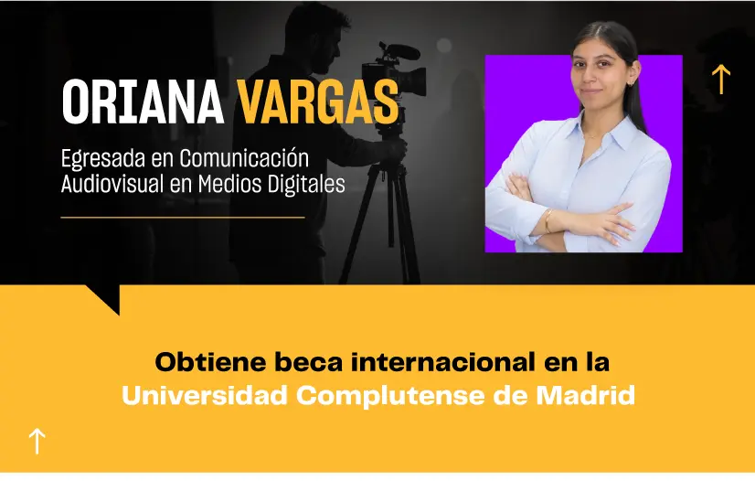 Nuestra egresada de la Facultad de Comunicaciones, Oriana Varas Rodríguez, de la carrera de Comunicación Audiovisual en Medios Digitales del campus Trujillo, ha sido seleccionada para cursar la maestría en Comunicación Audiovisual para la Era Digital en la Universidad Complutense de Madrid (UCM).