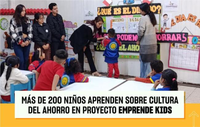 Con el objetivo de fomentar la cultura del ahorro y fortalecer habilidades blandas desde la infancia, desarrollamos el proyecto educativo “Emprende Kids”, una iniciativa multidisciplinaria que este año benefició a 203 niñas y niños de San Juan de Lurigancho, en los colegios Solidaridad III y Rayito de Luz.