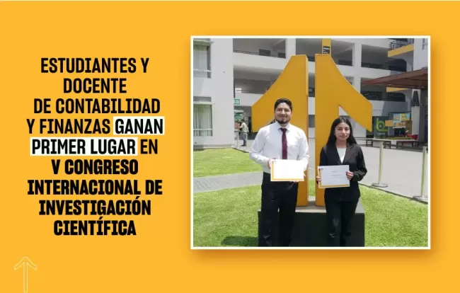 Nuestros estudiantes Neraly Chuñocca y Guillermo Laines, junto a nuestros docentes mentores Giannina Castillo y Randall Ramírez, de nuestra carrera de Contabilidad y Finanzas obtuvieron el primer lugar en la categoría Woman Challenge del V Congreso Internacional de Investigación Científica, organizado por lnuestra Facultad de Negocios.