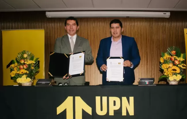 La ceremonia de firma se realizó en el auditorio de nuestro campus UPN Cajamarca y contó con la participación de nuestro rector, Dr. Martín Santana Ormeño, y del Dr. Miguel Hernández Gómez, representante de la Universidad Autónoma de Guerrero.