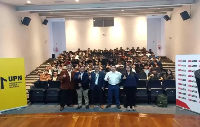 Con el objetivo de fortalecer el conocimiento sobre los recursos energéticos y el desarrollo sostenible del país, realizamos junto a Perúpetro S.A. la ponencia “Estratigrafía de la Cuenca de Trujillo y su Importancia Económica”, reuniendo a más de 120 estudiantes de nuestras carreras de Ingeniería de Minas, Ingeniería Geológica, Ingeniería Ambiental y afines.