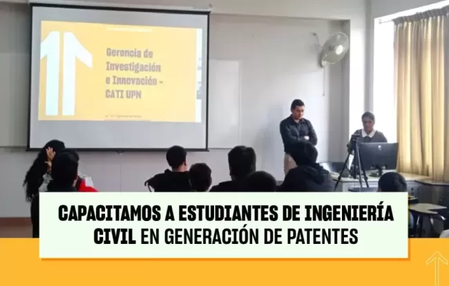 El taller fue organizado por la carrera de Ingeniería Civil junto a la Gerencia de Investigación e Innovación CATI UPN, y estuvo a cargo de Lucía Pejerrey, analista de Transferencia Tecnológica, quien motivó a nuestros cachimbos a descubrir y crear innovaciones que puedan ser patentadas. La actividad permitió a los estudiantes comprender cómo transformar sus ideas en activos legales valiosos, otorgándoles una ventaja competitiva esencial para el crecimiento y sostenibilidad de proyectos innovadores.