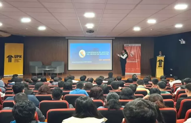 La conferencia, que reunió a estudiantes de las facultades de Ingeniería, Arquitectura y Diseño, Derecho y Negocios, así como a docentes, contó con la participación de expertos del Instituto Nacional de Defensa Civil (INDECI), como la directora de la Dirección Desconcentrada INDECI Cajamarca, Ruth Misahuamán Huaripata, y los especialistas Jessica Cabanillas Portilla y Luis Correa Chuquiruna.