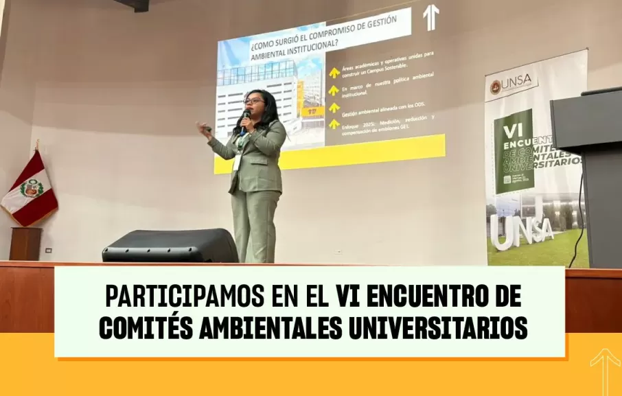 Participamos en el VI Encuentro de Comités Ambientales Universitarios (ECAU) en la Universidad Nacional de San Agustín de Arequipa (UNSA), espacio promovido por el Ministerio del Ambiente (MINAM) y la Red Ambiental Interuniversitaria (RAI), el cual reunió a instituciones de educación superior comprometidas con la sostenibilidad ambiental, con el lema “Afianzando el compromiso universitario con la sostenibilidad ambiental en tiempos de cambio”