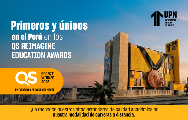 - La Universidad Privada del Norte obtiene la medalla de bronce en los QS Reimagine Education Awards por su modelo 100 % a distancia, convirtiéndose en la primera institución peruana en recibir este galardón.